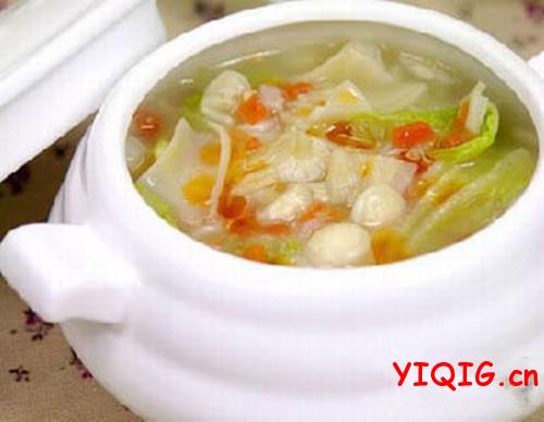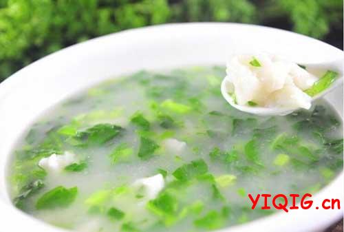 9.最后加精盐和味精调匀,盛入汤盘中,淋上奶油即可。一起过美食www.yiqig.cn
