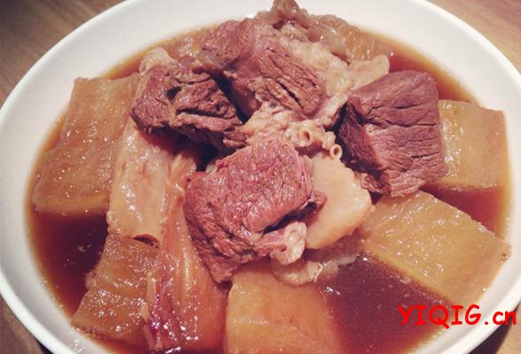 做法:首先第一步就是先把买来的牛肉和去皮白萝卜用清水洗净,都切成五六厘米见方的小块。大砂锅里装满水,放入牛肉煮开,撇去血沫,直到牛肉汤变清为止。往汤中加入洗净的桂皮、八角、桂树叶、小红辣椒和拍松的生姜块,再倒入料酒两勺、生抽两勺,盖上砂锅盖。用中小火炖一个小时后,加入白萝卜块再一起炖烧半小时,根据口味浓加细盐,并撒上葱花。
