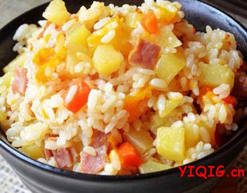 6.盖上锅盖,通电,选普通标准饭程序制作就可以了;直到电饭锅的提示音响起,米饭可以出锅了,打开盖,香味扑鼻而来。www.yiqig.cn