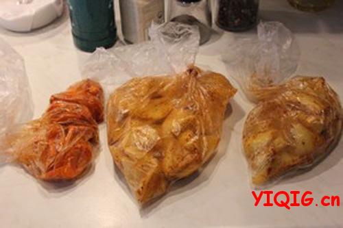 有人提议用手去拌匀比使用料理勺或橡胶刮刀效果更好。但我告诉你一个更好的方法,把要搅拌的蔬菜放到保鲜袋里,加入各种调料后,用手揉袋子,不但揉得匀还不用洗手