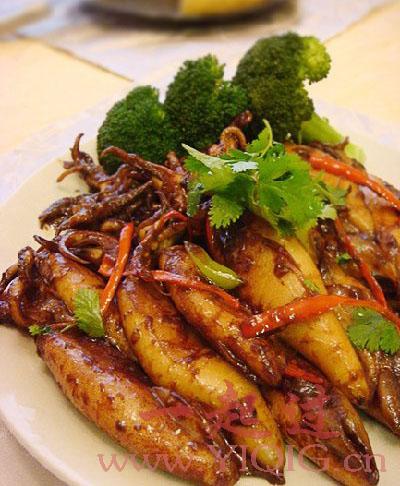 鱿鱼,也称柔鱼、枪乌贼。它和墨鱼、章鱼等软体腕足类海产品在营养功用方面基本相同,都是富含蛋白质、钙、磷、铁等,并含有十分丰富的诸如硒、碘、锰、铜等微量元素的食物。