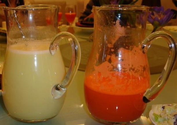 2.将玉米粒和萝卜块放入榨汁机中加入适量清水和奶粉,然后榨汁即可食用。