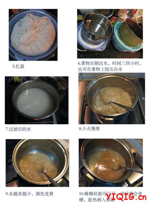 滤出汁液后用大火煎熬成糊状,冷却后即成琥珀状糖块。