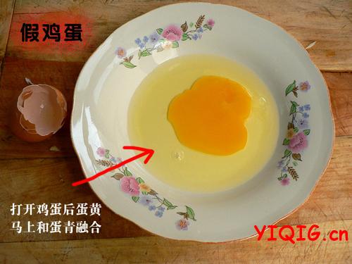 (2)把蛋打在碗里用手感觉,若觉得蛋清较稀,倒在手上蛋清很快就从指缝间滑落,而蛋黄可在手里随意滚动,那就是假鸡蛋。因为真鸡蛋蛋清较稠,蛋黄很难与蛋清分离干净;