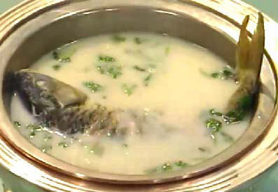 配料:黄鱼l条,香莱、葱、姜、胡椒粉、黄酒、麻油、味精、鲜汤、白醋、盐、植物油各适量。