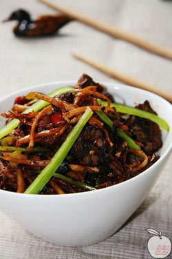 配料:鸭半片,姜,青椒,葱蒜,豆豉,辣椒酱,甜面酱