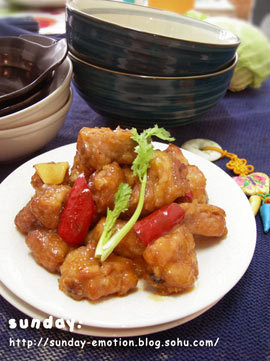 做法:打散的鸡蛋液加入适量盐,鸡精,和一点米酒拌匀,再加入排骨中拌匀,腌10分钟入味。把腌好的排骨均匀沾上淀粉,并用手捏紧防止脱落。小火慢炸排骨至表面金黄,全熟时捞出。
