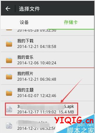 5、在选择文件界面上,我们在存储卡选项卡里找到要发送给微信好友的文件,然后点击该文件。