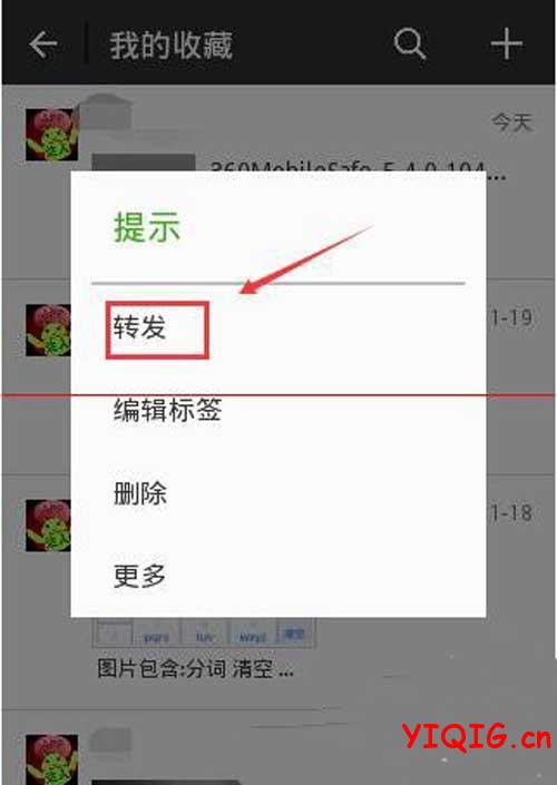 6、将要发送给微信好友的文件添加到我的收藏来,然后用手轻按几秒钟。