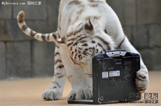 经测试,白虎最后咬掉了5个按键,不过没有关系,没这几个按键依然能够输入,笔记本照样可以工作。而且最后还能用胶水粘回其中的四个(不清楚老虎是否吞掉了一个)。
