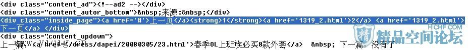 这部分的选择也是有一定的技巧。假如有些文章有单页形式,也有多页形式,这时我们应打开有多页的文章 ,然后查看其源文件。