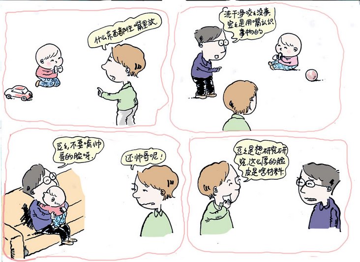 我们是80后爸妈,有人说80后“喜欢玩孩子,但不喜欢生孩子。”但是我周围的同学、朋友们都已经生孩子啦,而且都很称职呦。我们80后爸妈有我们自己的特点,喜欢和宝宝一起玩,喜欢给宝宝拍DV,而且我们这些年轻爸妈更容易接受新的育儿观念,所以我们是称职的爸妈。有宝宝的每一天我们都过的充实又有趣,我把这些有趣的真实生活画了下来,大家会很有同感呦!