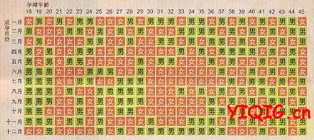 2.出生年月+9个月的农历虚龄为25岁,受孕月份在农历3月预测生男孩,受孕月份在农历5月份预测生女孩;