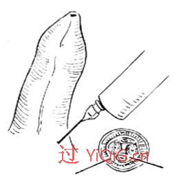 2.清洗消毒 用肥皂水和盐水清洗局部,用1∶1000新洁尔灭液消毒;包茎者以注射器接静脉切开针头将新洁尔灭液注入包皮囊内消毒。