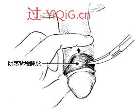 7.止血 将阴茎皮肤向上退缩,显露出血点后止血,应特别注意将阴茎背侧正中的阴茎背浅静脉结扎。
