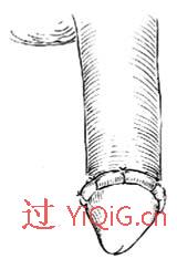 2.包皮不可切得过多,以免引起痛性阴茎勃起。一般包皮内板应剪至距冠状沟约0.5cm处。系带部也不可留得过少。