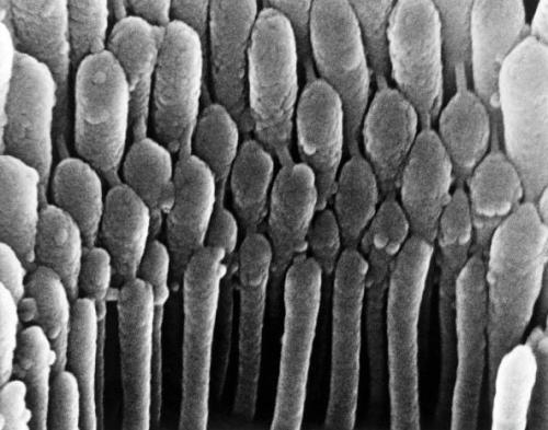 这张图片看起来好像是在耳朵里面对耳毛细胞进行近距离观察时拍摄的。耳毛细胞的主要功能是发现对声震作出反应时产生的机械运动。