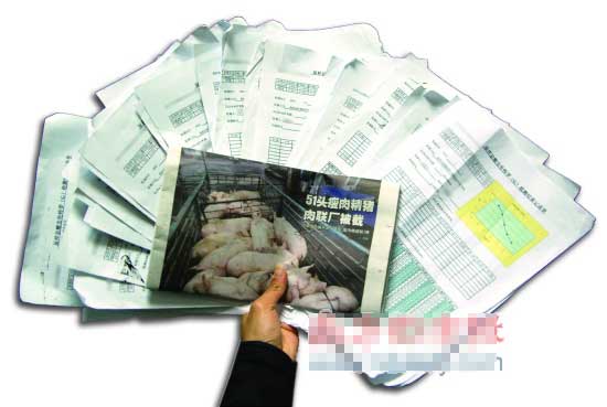 ▲45张记录单都有“瘦肉精”超标样品记录。
