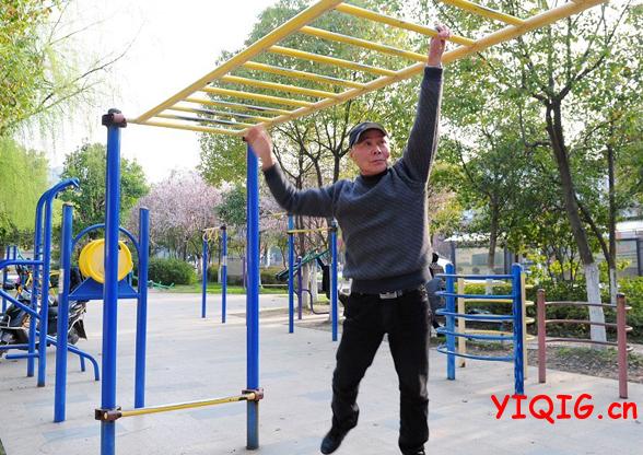 把自己“吊”起来,也就是悬身运动,用两手握住比自己稍高的单杠、门框等,根据身体状况,两手用力上拉,身体尽量向上,两脚离开地面。