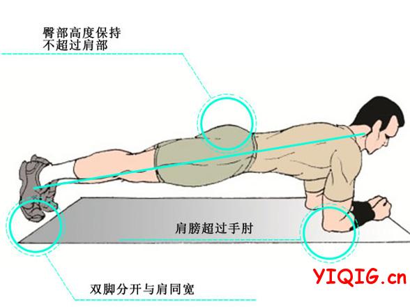 依旧是普通平板支撑的动作预备,屈臂肘部置于肩膀下,双腿向后伸直,脚尖点地,背部保持平坦,掌心朝上拇指朝两侧,双脚分开与肩膀同宽。然后渐渐将重心移至一侧的手肘和同侧脚尖,使身体平面垂直于水平,然后没有支撑的手伸直,并尽量抬高没有支撑的一侧的脚,每次坚持这个动作一分钟,然后换另一侧重复。