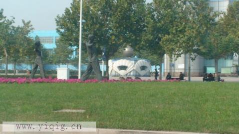 图二,路边的一男一女雕塑,是在做广播体操吗?