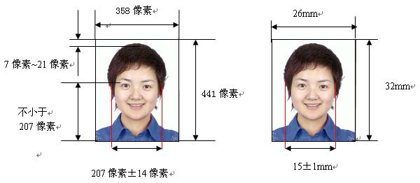2、照片规格:358像素(宽)×441像素(高),分辨率350dpi。