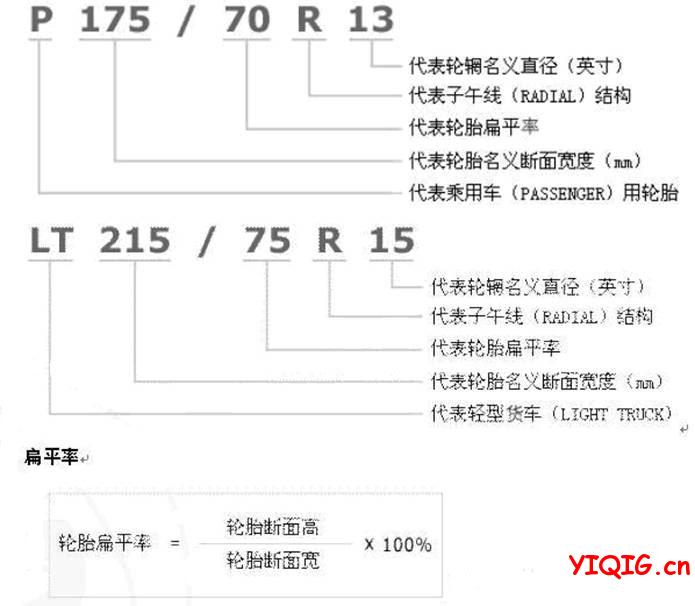 以下使一个轮胎规格表示方法的例子:轮胎规格最新表示法: