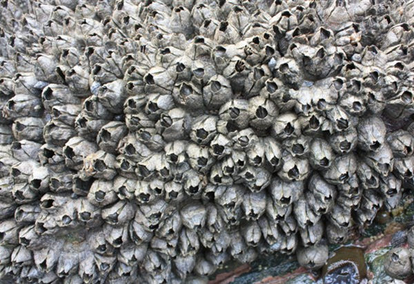 藤壶其实是蔓足类动物的广义俗称,这类动物因为具有藤蔓状的的蔓足而得名。广义的“藤壶”包括有柄类——也就是曾经在网上流传的 触手系海怪 ,狭义的藤壶指的则是图中的无柄类。