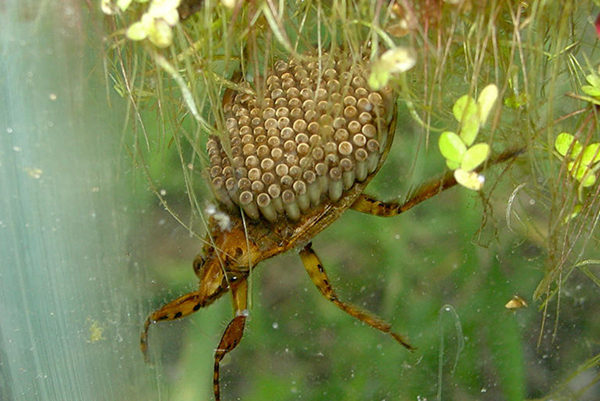负子蝽,这种水生昆虫属于异翅目(Heteroptera)负子蝽科(Belostomatidae),常生活在池塘、河渠和水田等环境里。从“负子”一名你应该就能猜到,负子蝽干的就是背“卵”的活。没错,负子蝽科某些属的雌虫临产卵时,会爬上雄虫体背,用前足紧抱雄虫的胸板,用后足蹬在雄虫腹部的翅上,支撑起身体产下卵。同时,它还会分泌出大量的粘液把卵粘附在背上。负子蝽雄虫今后一段时期内就将驮着卵在水中生活,等待卵的孵化。