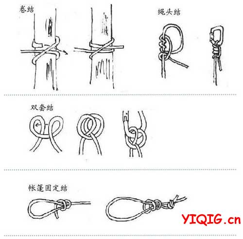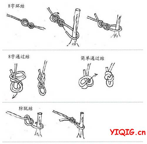 2、混合结:又称单衣结。用于不同直径绳索之间的连接。(一起过www.yiqig.cn)可分为混合结和双混合结。