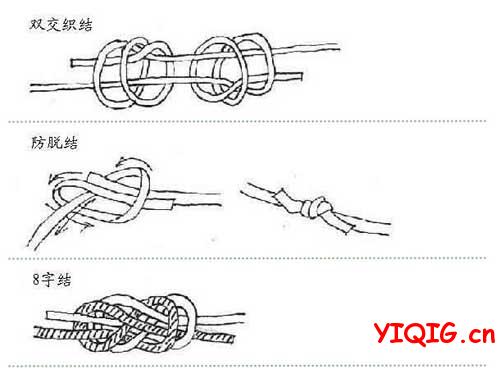 4、8字环结(rewovenfigure8):主要用于主绳与安全带的连接。