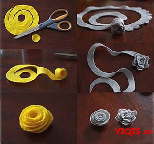 图解布衣花朵的过程,超简单!家里有不用的废料都可以加工改造,制成漂亮的花朵装饰。