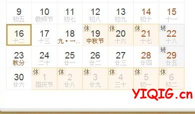 9月28日(星期六)、9月29日(星期日)分别调至10月4日(星期五)、10月7日(星期一)公休