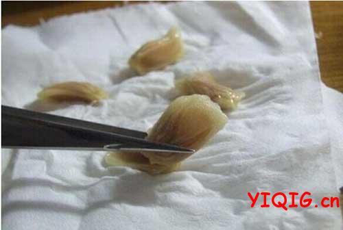 2.用刀剔除包裹的外壳,露出了里面黄色的种子