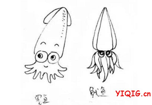 鱿鱼(鱿鱼比较干净,但鱿鱼身上的膜不如墨鱼的膜好撕)卡通是不是有点抽象,用现实的做比较