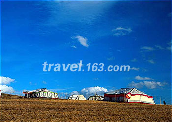 我们的包座落在群包之中,用不着去想那种万一。隔壁七八个年青人,将围毡撩得高高,正团坐在门口的小桌上喝酒。没有兴趣去关心他们,因为此时,我们每个人的内心都需要放纵。