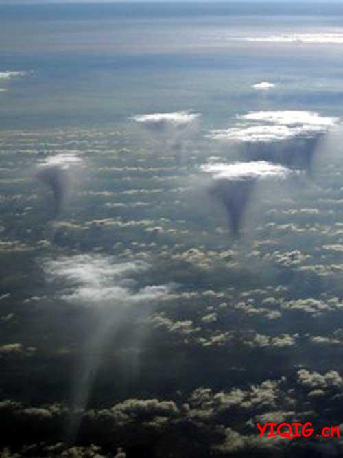 幡状云。幡状云是一种从云中落下的降水,但还没到地面前就已经蒸发。位于海拔更高处的降水会以冰晶体的型态出现,继而溶解、蒸发。这是由经压缩的热力所造成,而愈靠近地面时气压愈大。幡状云在沙漠地区极为常见。