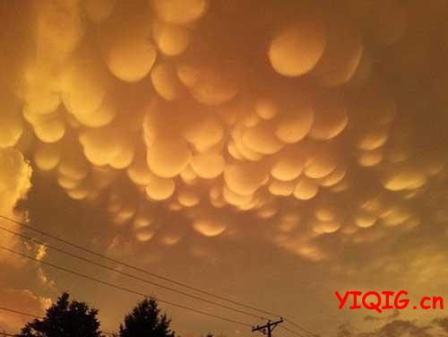 暴风雨前的乳房云,橙色的云难得一见。形状优美,恰似美人的乳房。