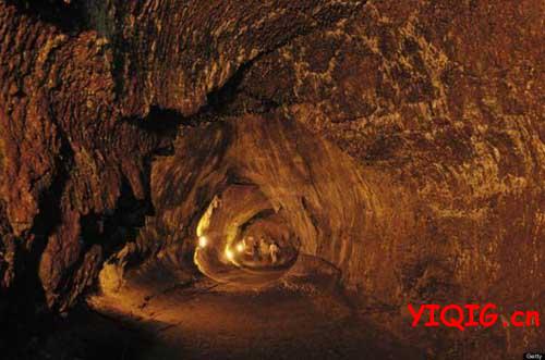 夏威夷火山国家公园里的基拉韦厄火山和瑟斯顿熔岩,自1983年以来,基拉韦厄火山中一直喷涌出熔岩,它是现代喷发最久的火山之一。500年前蜿蜒曲折的熔岩河形成了一个复杂的洞穴网络。