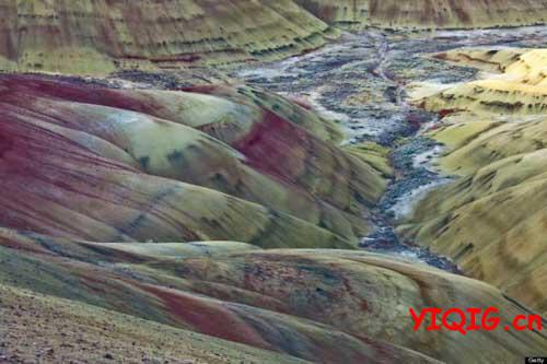 俄勒冈州惠勒县的彩色山,不同颜色的色带代表山丘历经的3000多万年变迁。考古学家在此发现了原始骆驼和犀牛的遗骸。