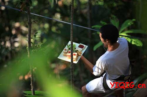 ,告别餐厅吧,体验一下别具一格的泰国树屋餐厅,这里服务员都是通过索道送餐,位于Soneva Kiri 度假村~~~ 拒绝摩天大楼,就在树上眺望风景,享受美食!