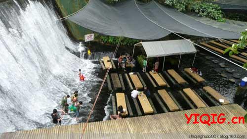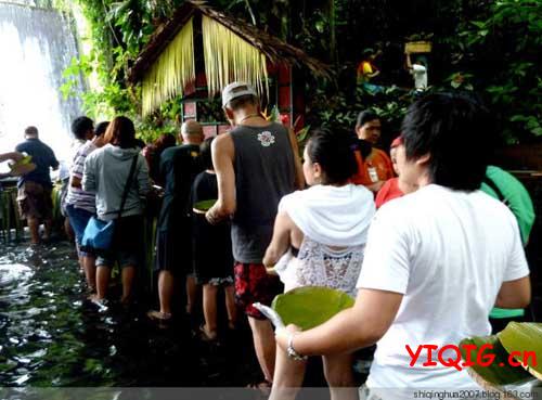 在这里,游客们可以一面欣赏飞流直下的瀑布,一面品尝风味独特的菲律宾美食,而且吃饱后还可以在瀑布下嬉戏一番。