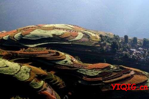 位于云南昆明西南部的偏远地区东川,方圆数百公里都是红土,土壤里的铁质经过氧化慢慢沉积下来,逐渐形成了这炫目的色彩,放眼望去,山川和原野呈现出暗红、紫红、砖红等不同的红色。