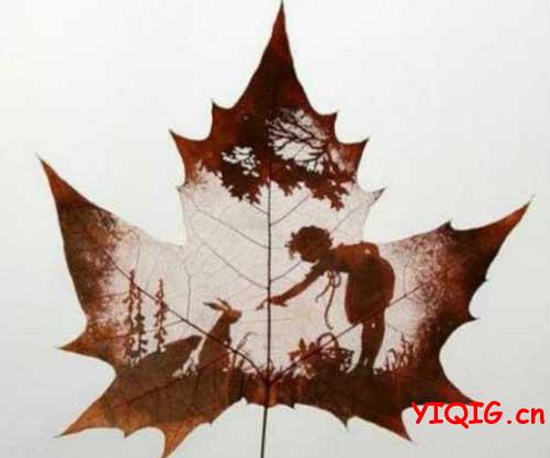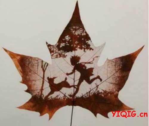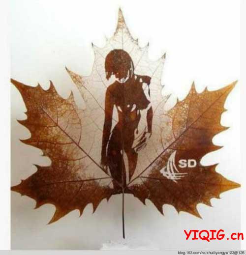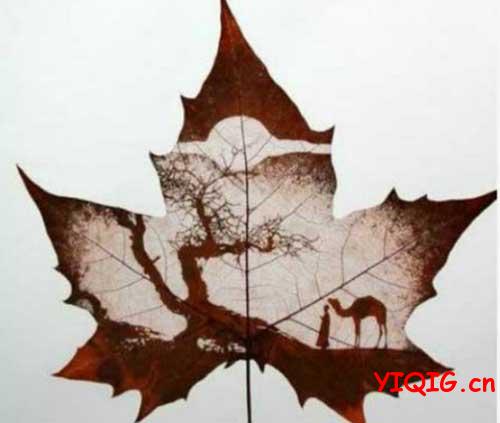 是苍白的,可是在微雕艺术家的眼里叶子或许是丰富多彩的,树叶上面的精美雕塑作品,精美至极的微雕