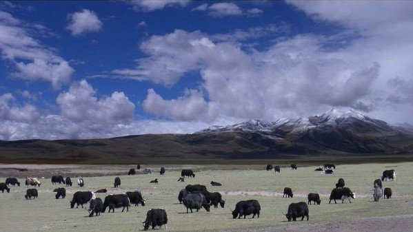 在西藏的原野上见到最多的是牦牛,身披长毛,体格强健,成群结队,十分壮观。特别是走近时,它们表现的烦躁和不友善,圆目相视,打着响鼻,扎出一幅神圣不可侵犯的架势。 西藏牦牛有着持久的耐力,有着对艰苦条件下的适应能力,能在高海拔的自然环境下,抵御严寒和风雪,是藏民的亲密伙伴。