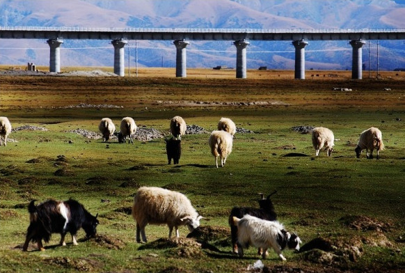 西藏的羊犹如身穿棉袍的藏人,并不优雅,却有风度。它们一般怕人,狭路相遇,都会绕道而行。在山脚下的草原上,常常可以看到它们的身影,在骑马牧人的看护下,安静地、快乐地享受着美好的生活。它们依草原而生存,草原因它们而美丽。西藏的生物链就是这样的简单,更是这样的明了,没有深奥的哲学问题,因为这里的一切皆按最原始的自然规律运行着。