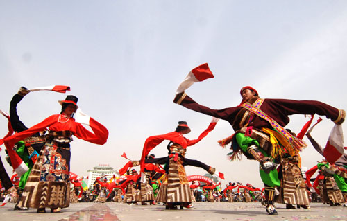 西藏的舞蹈是最美的,宽衣长袖,飘若天仙,盛装登场,雍容华贵,珠光宝气,耀人眼目。无论是迎宾的牦牛舞,还是节日盛会的圆圈舞——“锅庄”,以及常见的大型团体舞——“谐饮”,无不体现了藏族的豪迈之情。舞蹈并不复杂,就是几个基本动作,然而跳动起来动作夸张,在我看来它不仅是一种艺术,更是一种运动,体能达不到一定的指数是很难完成看似简单却不易达到的舞姿。即便体力十足,但少了藏人与生俱来的节奏感和奔放的性情,同样也难达到藏人特有的舞姿。因此西藏的舞蹈永远是藏族人的,一切模仿永远是模仿。一切道理到了西藏就是这么的简单,就像这里的舞蹈一般,简单之中包含了无穷的内涵。