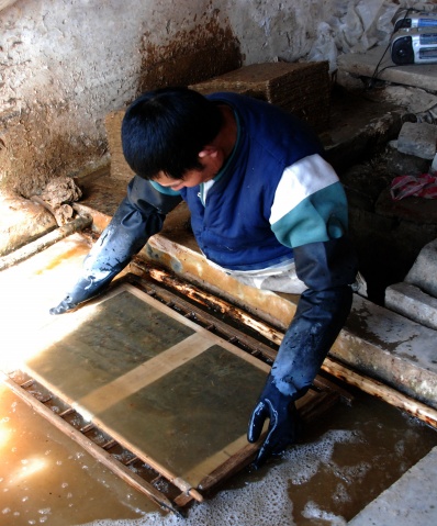 一行二十多人到曲阜王庄乡纸坊村摄影采风, 纸坊村全村700多户人家,,主要以生产桑皮纸和系列工艺加工为业,是个远近闻名的造纸专业村。纸坊村的造纸以其独特的工艺质量誉驰全国。桑皮纸为裱糊酒、油、醋、酱等多类容器的上乘佳品,其原料取自桑树皮其工艺制作需要蒸煮、砸轧、撞洗、捞晒等36道工序。该村生产的桑皮纸,其特点:纤维长,有拉力,不易断。其用途:食品储存工具内防腐,酒类容器内防腐,裱糊字画等。用桑皮纸糊制的食品器具,储存期间不变质,不渗漏,保质防腐。用桑皮纸、猪血、石灰糊制的各种条编、木制酒类容器,能长年储存各种高低度酒,使其不变质,不变味,喝起来回味无穷,美不可言,并且使用期都在十年以上。