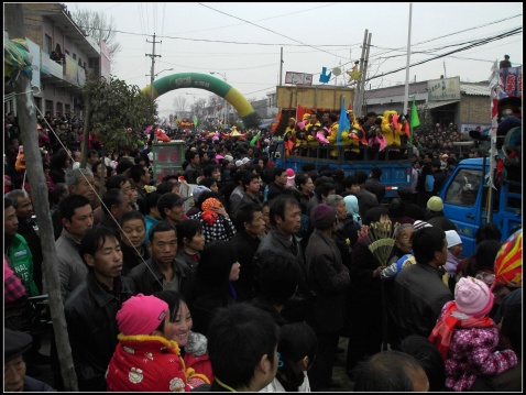 所谓南赛,就是在传统的农历二月十五奓村张家桥渡庙庙会上,为了祭神而举行的文艺活动。按传统的说法就是耍社火。南赛的社火种类很多,有龙灯、狮毛、海巴、高跷、锨把背娃(也叫顶芯子)、大头和尚戏刘翠。解放后又加入了新的文艺形式——扭秧歌。当然也少不了敲锣鼓家伙。十里奓村敲家伙的花样繁多,虽有小异,大致相同。有三锤子、五锤子、七锤子、干敲。把这些连起来就叫“七五还三带干敲”当然,南赛社火里最精彩、最吸引人的是芯子。