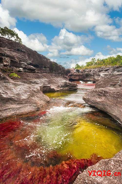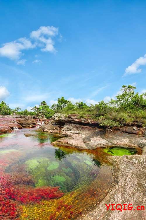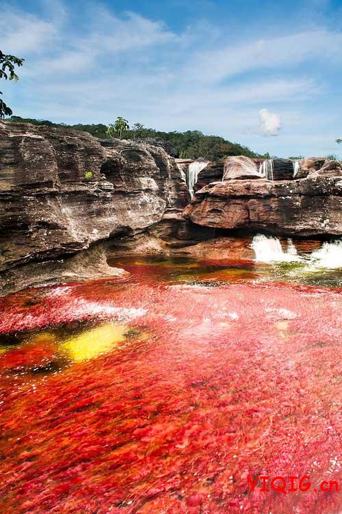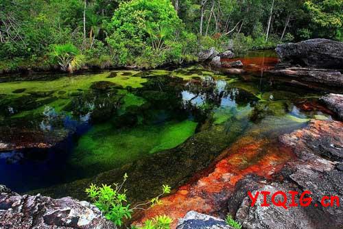 在过去大部分时间里哥伦比亚的Cano Crist 河跟普通的河流没有什么两样,但是它就在短短的几天里,河水竟然被着色成了节日庆典般华丽颜色,而且这些色彩都来自于纯天然的物质。据说这些物质是一种特殊的藻类,多种颜色的藻类生长在河床的岩石上从而出现了这一现象。